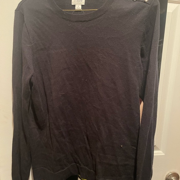 J. Crew sweater. Black, ruffled end sleeve, 3 buttons on one shoulder. Never worn.