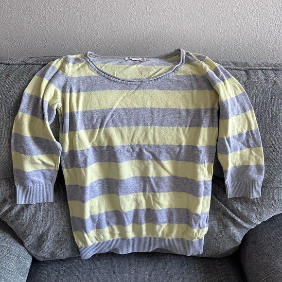 Yellow and grey striped forever 21 sweater three-quarter length sleeve