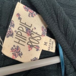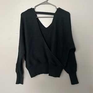 Darker blue sweater , open back