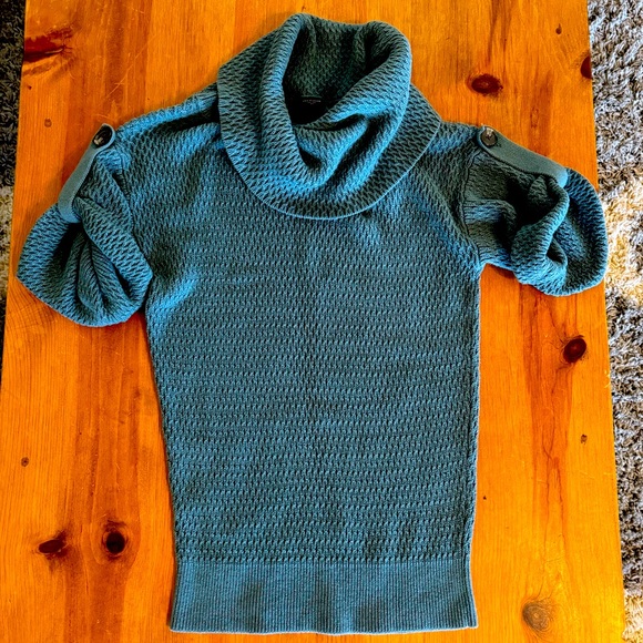 Ann Taylor cowl neck short sleeve sweater with button accents on sleeves. Very good condition, no tears, rips, stains, etc. very soft sweater. 26” from neck to hemline.