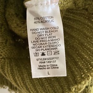 Olive green sweater. Short in length. Smoke free home. Only worn once.