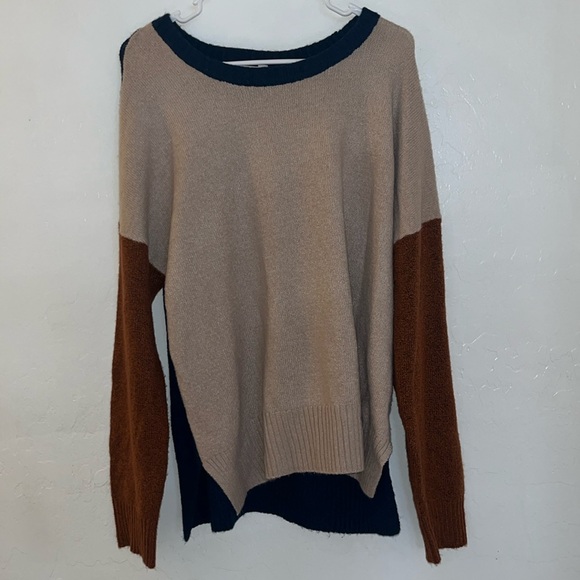 Second hand , great condition . Multicolor sweater . Blue , brown and tan . Long sleeve . Size XXXL . By time and tru.