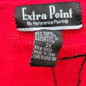 The ugly sweater contest? What can I say? It is pretty in it's own way. Very busy & I will go threw before shipped to tack down the loose yarn on embroidery. Also missing a button that has very pretty crocheting on it. 2X will fit a large person. yes I will upload measurements when I come back & edit.