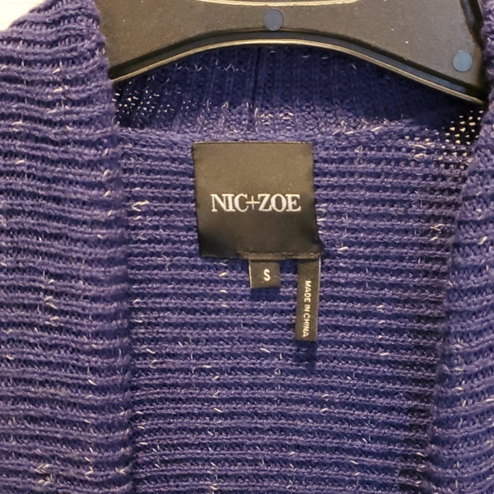 Shawl collar open front sweater with angled hemline. Size S by NIC+ZOE. Excellent condition.