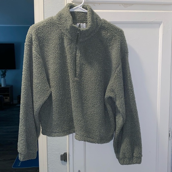 Cropped quarter zip sweater, seafoam green color