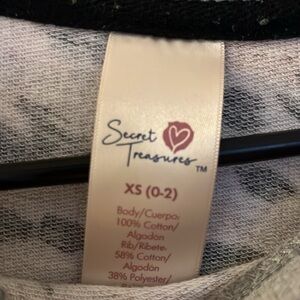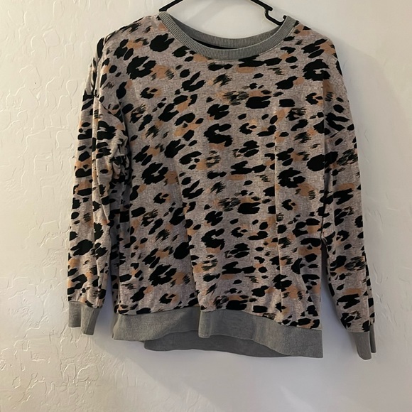 Second hand , leopard print sweater . Size XS . Gray , tan , black . By secret treasure .