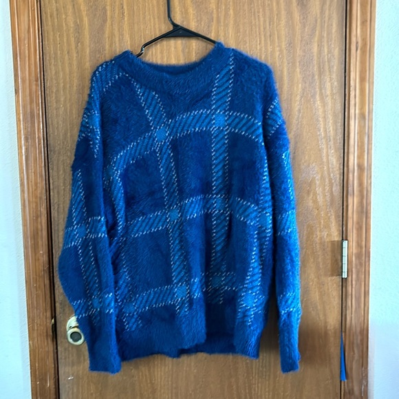 Long sleeved sweater. Soft and fuzzy feel. 72% nylon. 28% acrylic. XL 16-18.