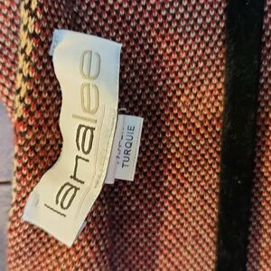 Sweater with button closure at shoulder that drapes across the front. Great piece for fall and winter.