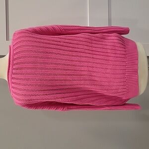 Fuschia sweater. Wear a cami, tank underneath. Dropped shoulders.