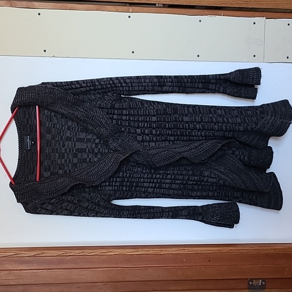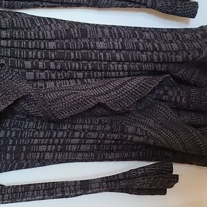 Black/ gray color with long sleeves wide. Clip in the middle to close or open. no rips, tares, non smoking home.