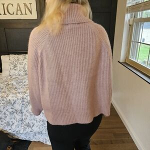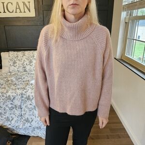 very cute rose colored cropped turtle neck sweater. extremely warm! only worn once. smoke free home.