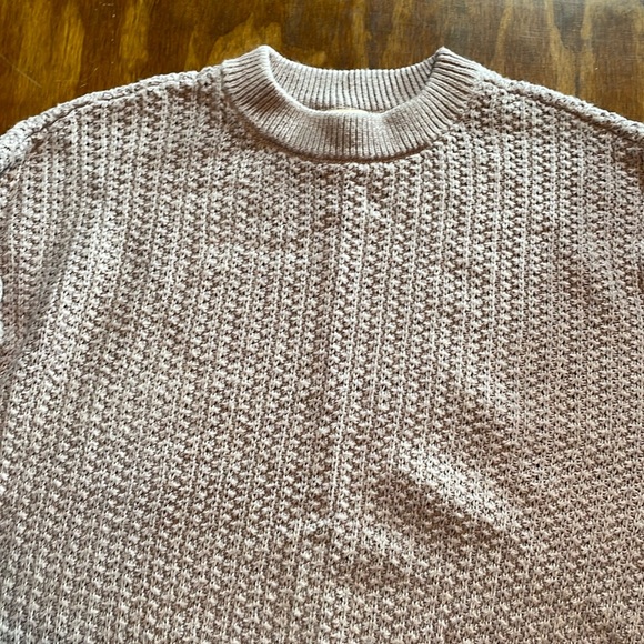 Like a light pinkish purplish color. Sort of cropped. It’s not long to cover butt.