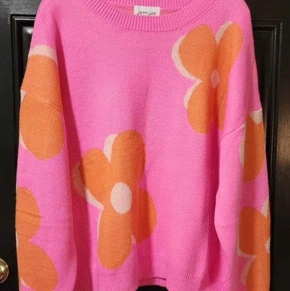 Bring back the 70's! Pretty flower power sweater by Lemon Love. Long sleeves, rounded neck. New! Size Large.