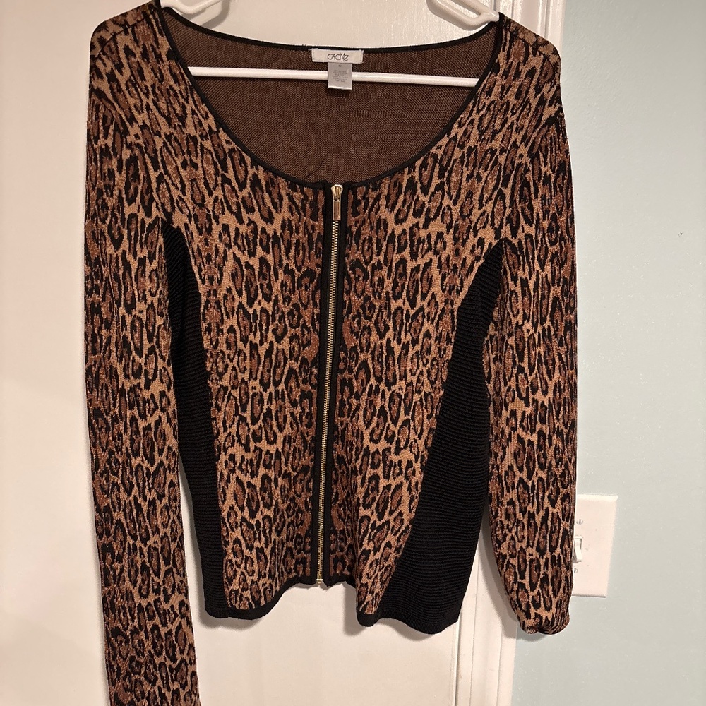 Leopard print, zip up sweater, size medium
