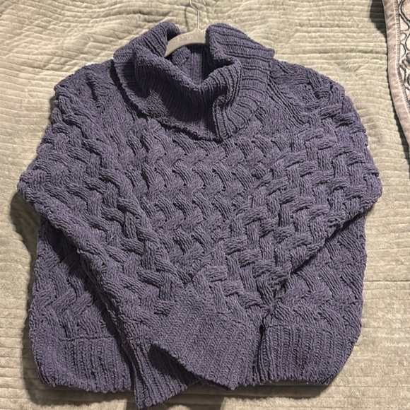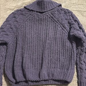 Knitted sweater. Super soft. Loose fitting. No stains or snags. Warm and cozy feel. Perfect for these cold winter days. Blueish purple color.