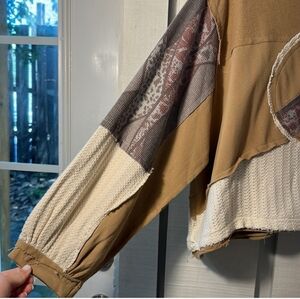 Introducing our meticulously crafted Designed in Round Neck Long Sleeve Oversized Fit French Terry Top, a true embodiment of unique style and comfort. Made from a blend of 70% cotton and 30% polyester, this pullover sweater boasts exceptional softness and durability. Its distinctive features include a captivating printed thermal pattern, intricate cut and sew construction, and a standout peace emblem patchwork design that adds an element of activism and individuality to your ensemble. The frayed edge details provide a touch of edginess and authenticity, while the oversized fit ensures cozy wear. This versatile piece effortlessly combines fashion and conscience, making it a must-have for those who want to wear their values with pride while staying comfortably chic.