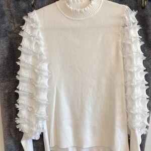 Beautiful white cowl sweater, just worn twice. The details on the sleeves make it look nice and chic.