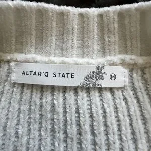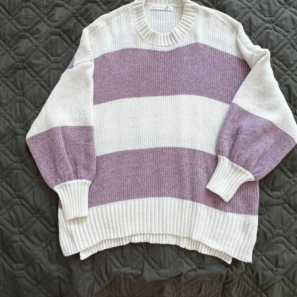 Purple and white cozy sweater, size M, worn once, great condition. super soft.