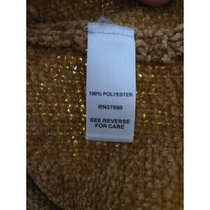 Mustard-colored sweater by the brand est 1946. It is a long-sleeved, crew-neck sweater with decorative knit detailing on the lower sleeves. The sweater is soft. The size is M.