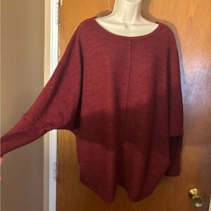 Burgundy sweater with bat wings. Very soft very comfortable.