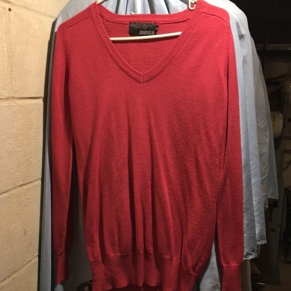 Hot Pink V Neck Long Sleeve Sweater Size Medium By Ounce