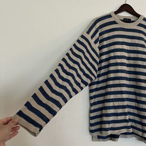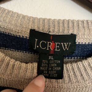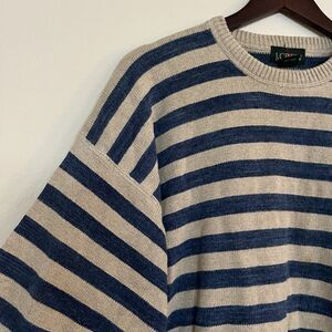 J Crew Vtg Men's Crew Neck Striped Preppy Linen Grandpa Pullover Sweater SZ XL