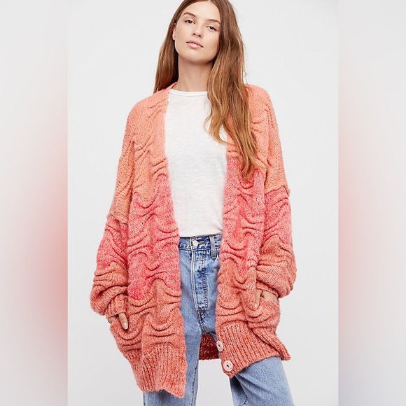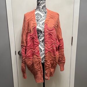 Excellent condition pink aquatic sweater. Oversized fit. Two front buttons at bottom.