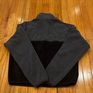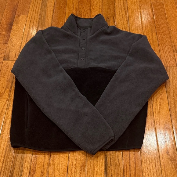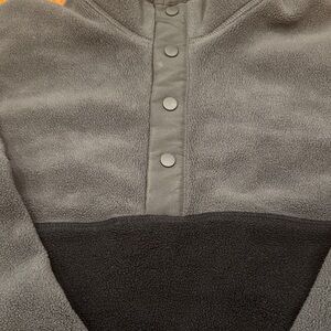 Stylish black and gray Uniqlo sweater. Features a button-up collar. Soft and comfortable fabric.