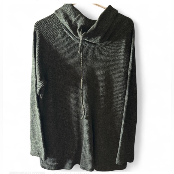 Grey cowl neck sweater with drawstring #winterknits