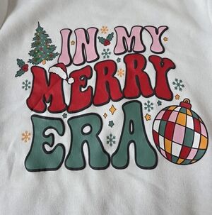 White sweatshirt with 'In My Merry Era' graphic. very soft, worn one time.