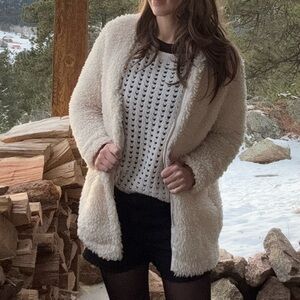 Cotton acrylicic nylon wool mohair sweater. Ivory/cream. 24” across bust. 26.5” long.