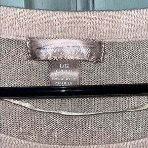 Gently used long sleeve, light sweater. Not thick, but not thin😃 cute slits on the sides