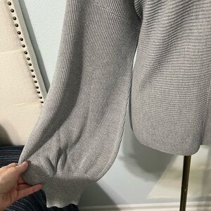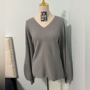 Long sleeve vneck sweater. Balloon sleeve. Neck to sleeve 30”. Pit to pit 24”. Length 26”. 60% Cotton / 20% Viscose / 20% Modal.