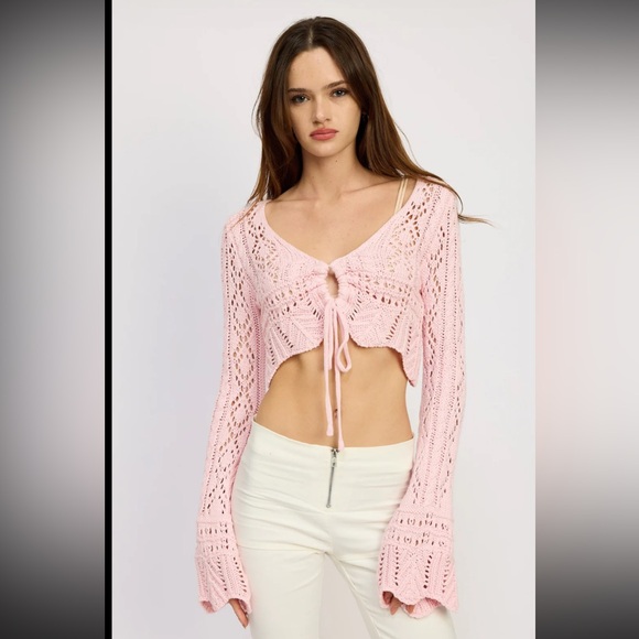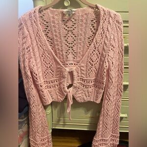 Emory Park crochet pink crop sweater