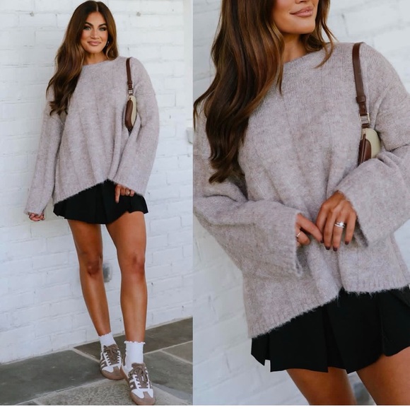 Super super soft sweater from these three boutique! Worn once! Like new! Fuzzy material but not itchy in my opinion!