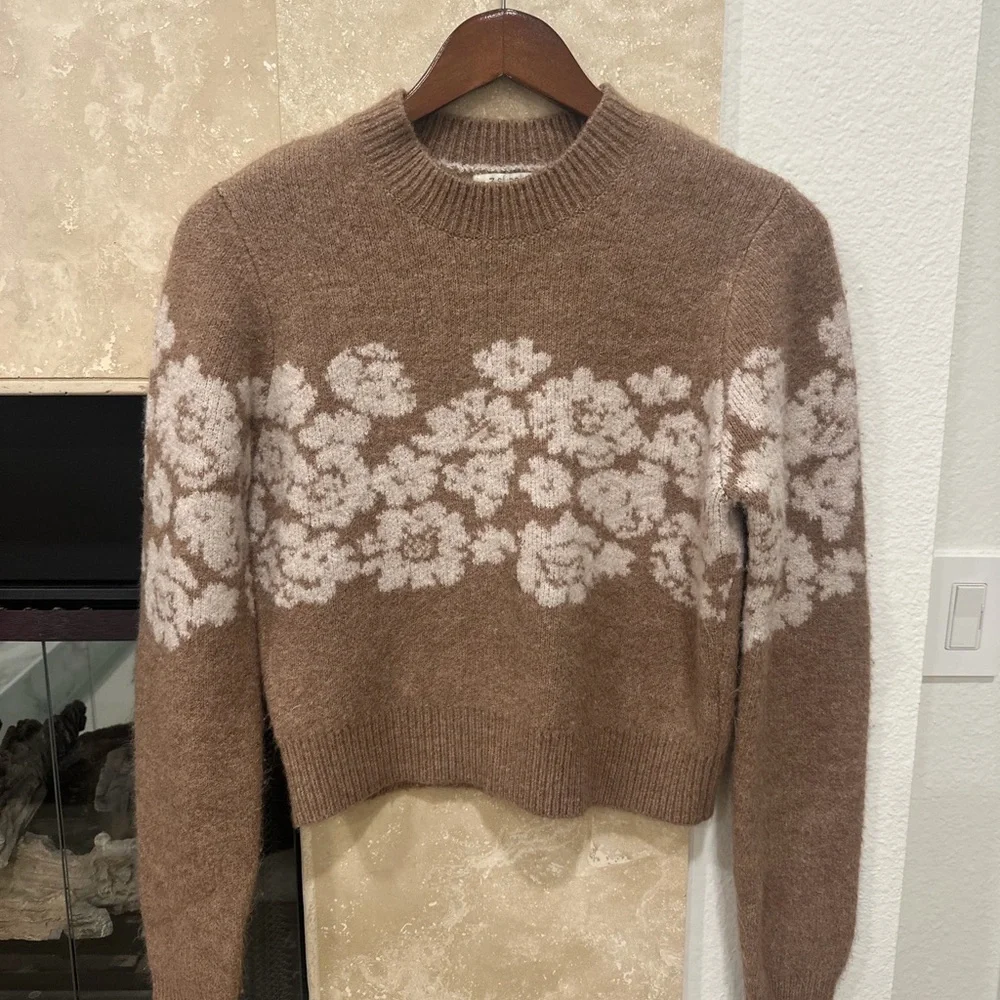 Z Supply camel colored sweater with white floral pattern . In perfect condition, never worn! Size XS #knitwear #floral #sweater #brown #trendy