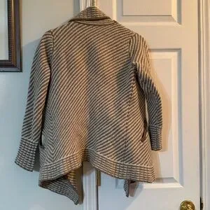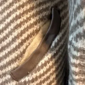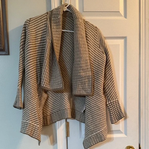 95% Merino Wool and 5% Cashmere sweater. No issues. The sleeves are very thin and do not stretch very much. My arms are just too big for this lovely sweater. I took the tag out and cannot remember the brand.