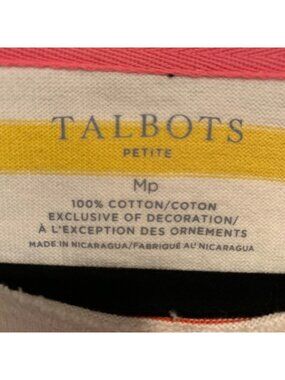 100% cotton long sleeve sweater. Cream color with blue, pink, red and yellow stripes.