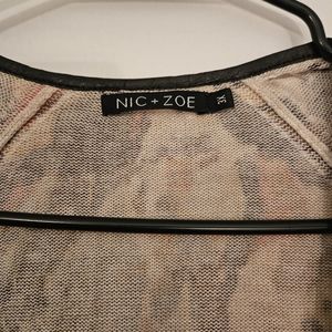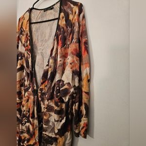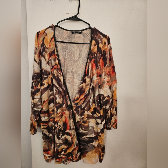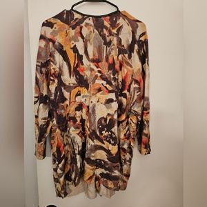 Sweater in autumn colors, single button and abstract print