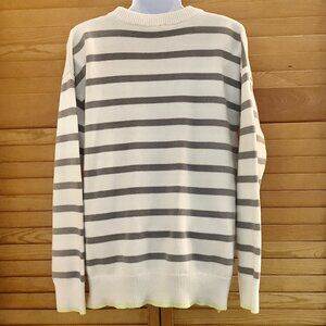 Sweater Asymmetrical White Striped Long Sleeve Cotton Blend Simply Vera Large