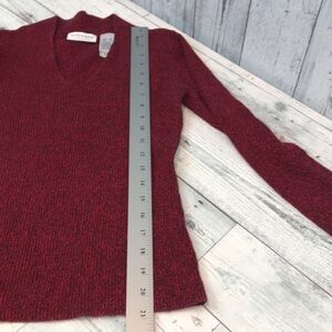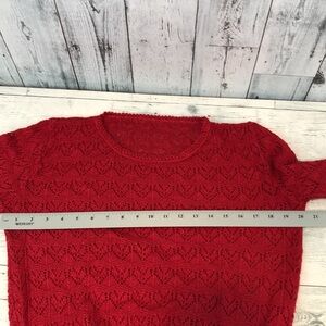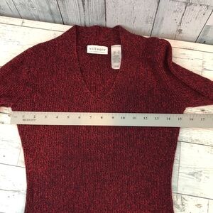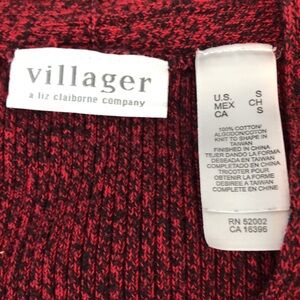 Villager by Liz Claiborne deep red and black, v-neck, (2) Unknown brand,no material or size tag, thinking a Small, see measurements,red crocheted,crew neck, colors may vary due to lighting, good used condition, Sz S