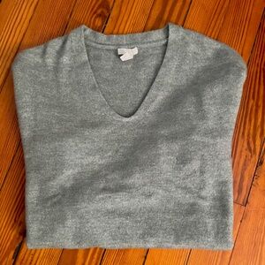 ~ Oversized soft green V-neck sweater with side slits, Size Large , H&M