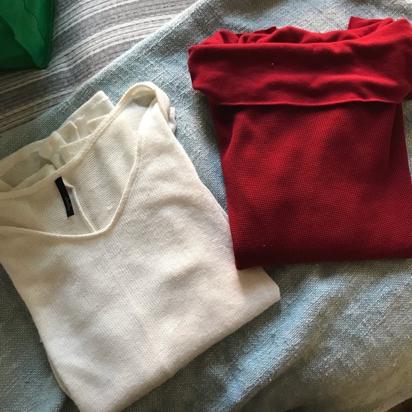 Gently worn (a few times) sweaters perfect for fall/winter. Red is off the shoulders and white is a classy v-neck. Price is for BOTH tops.