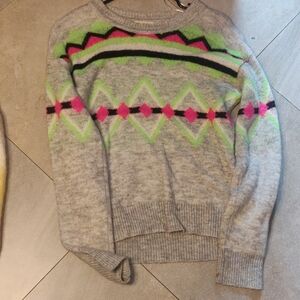 grey sweater with green and pink patterns - size S