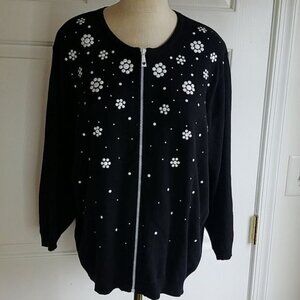 Sweater Cathy Daniels Cardigan Black Jacket Floral Women's WOMAN'S Extra Large