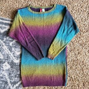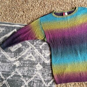 This Divided sweater showcases a stunning gradient design, transitioning smoothly from blue to purple. Featuring a classic crew neckline and three-quarter length sleeves, it's perfect for casual wear or layering. The rich, saturated colors create a striking visual effect, making it a standout piece in any wardrobe.
