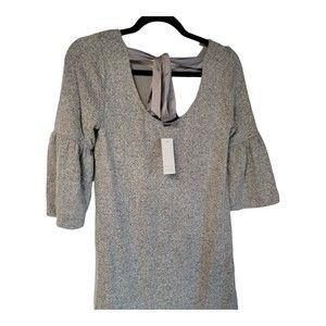 white house black market Bow Back Gray cozy midi Sweater dress XXS