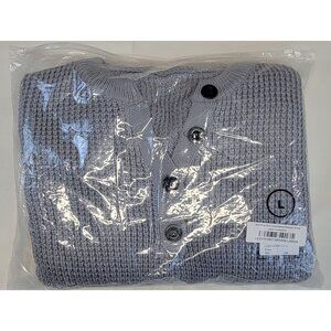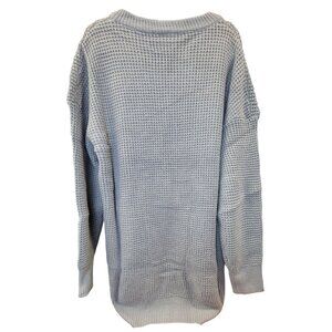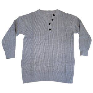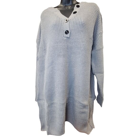 Sweater Dress Soft Gray Knit Long Sleeve Buttons V-Neck Womens Size Large New