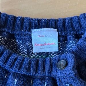 Charming blue sweater with tree accents. Ideal for warmth and style.