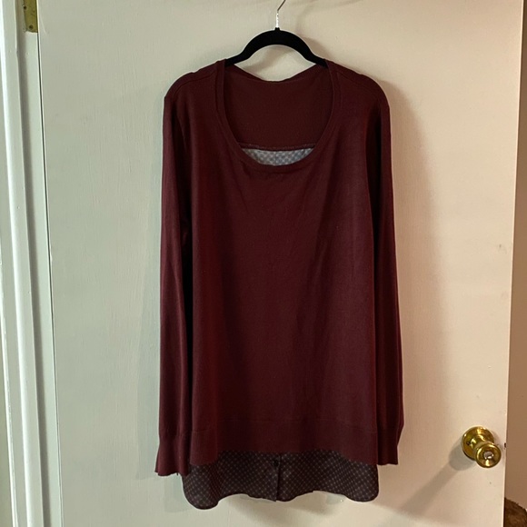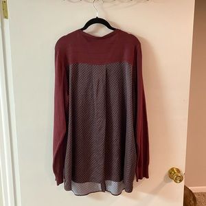 Original proto from a previous job. Fits like a 1X, worn once. Sweater front is maroon and back is black with maroon print. I suggest hand washing this garment